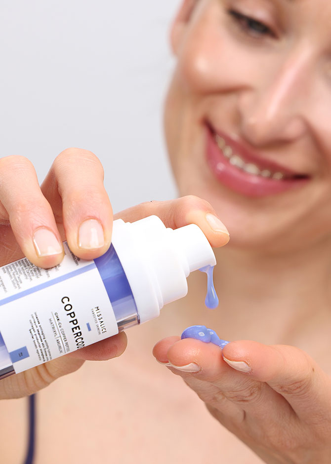 Start your routine with lighter textures like serums or tonics, then follow with COPPERCODE toward the end to help maximize its benefits.