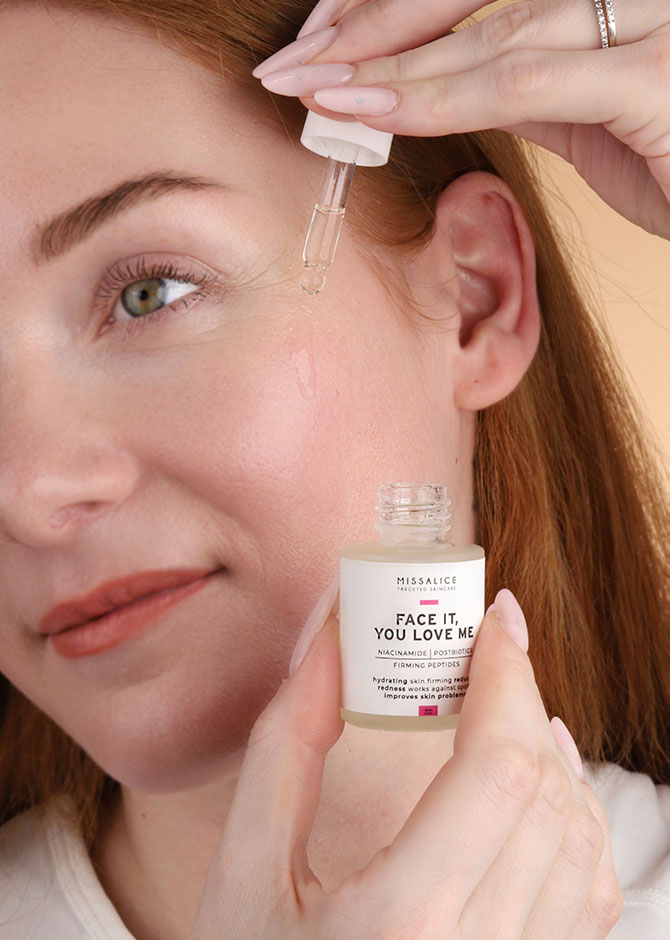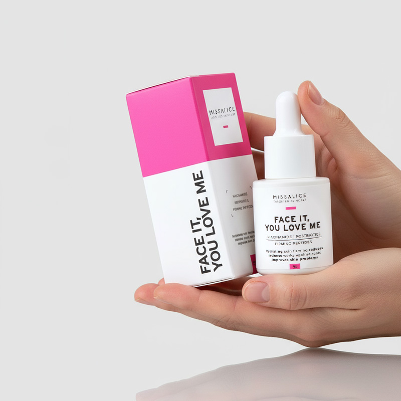 FACE IT, YOU LOVE ME is your everyday support serum when skin feels irritated, reactive, or out of balance. Its gentle yet effective formulation helps restore comfort, reinforce the skin barrier, and improve overall skin resilience — without overwhelming sensitive skin.