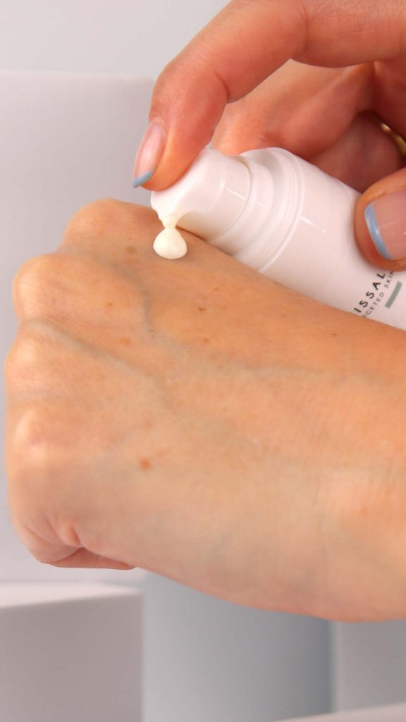 The cream is lightweight and easy to apply, spreading smoothly without leaving a white cast on most skin tones (note: darker phototypes V–VI may notice a slight residue). It does not clog pores, leave a shiny finish, or feel heavy on the skin.